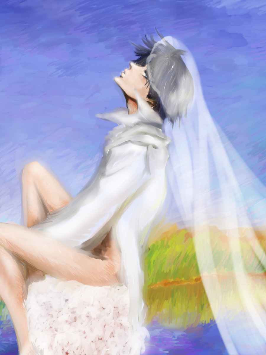 時任九月生まれなのに秋っぽい絵を描いたことないな。。。6月の花嫁をもじって9月の花嫁や!ドレスはワイシャツ1枚でええんや!塗りは印象派にトライしてみたいな